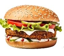 Voldaan Plantaardige patty met veganistische cheddar, verse groenten, tomaat en komkommer en een romige avocadosaus. 100% veganistisch — 100% smaak.